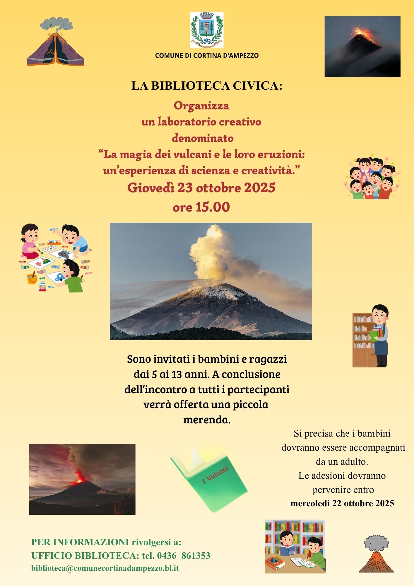 A conclusione dell’incontro a tutti i partecipanti verrà offerta una piccola merenda. Si precisa che i bambini dovranno essere accompagnati da un adulto.