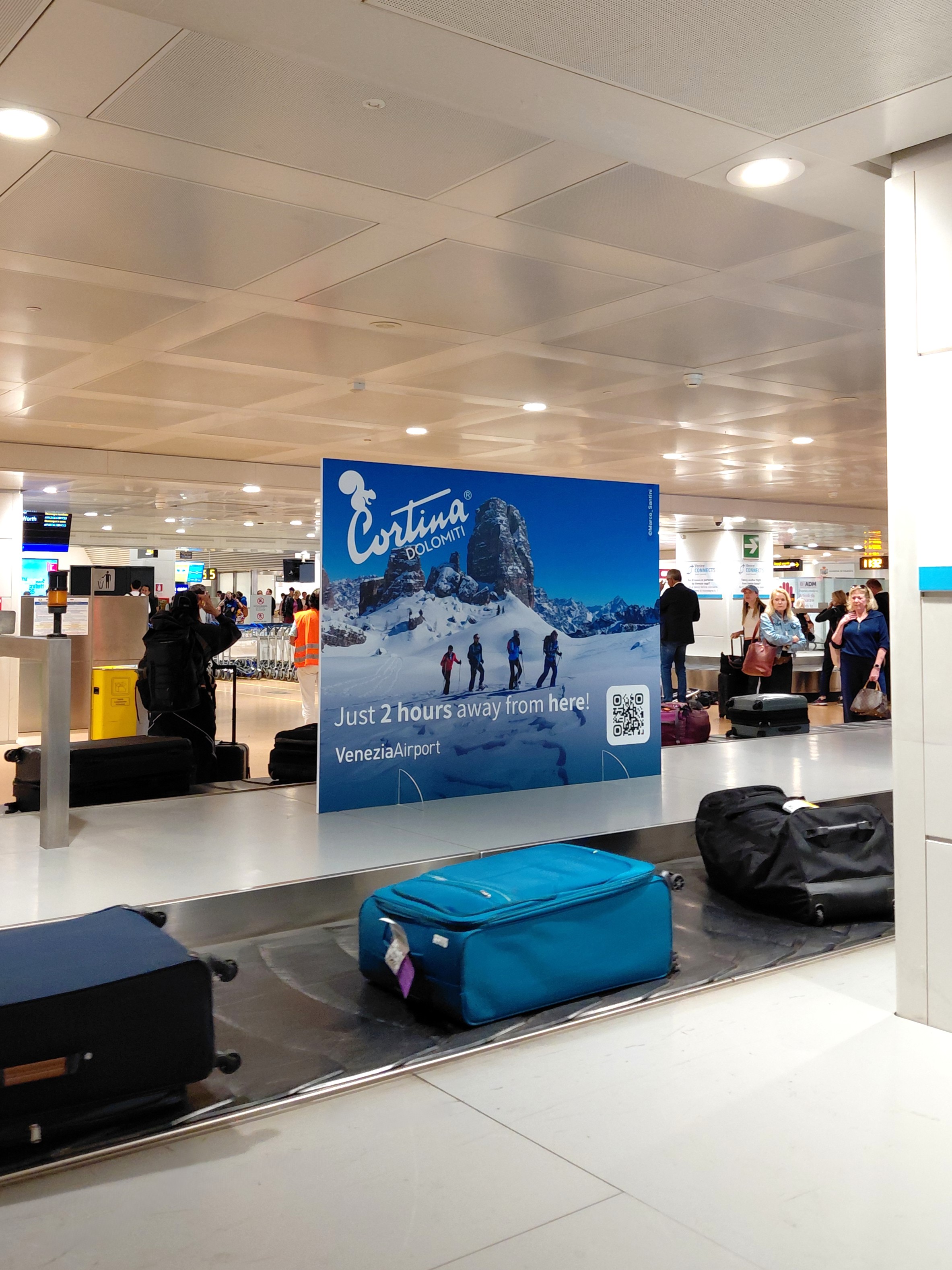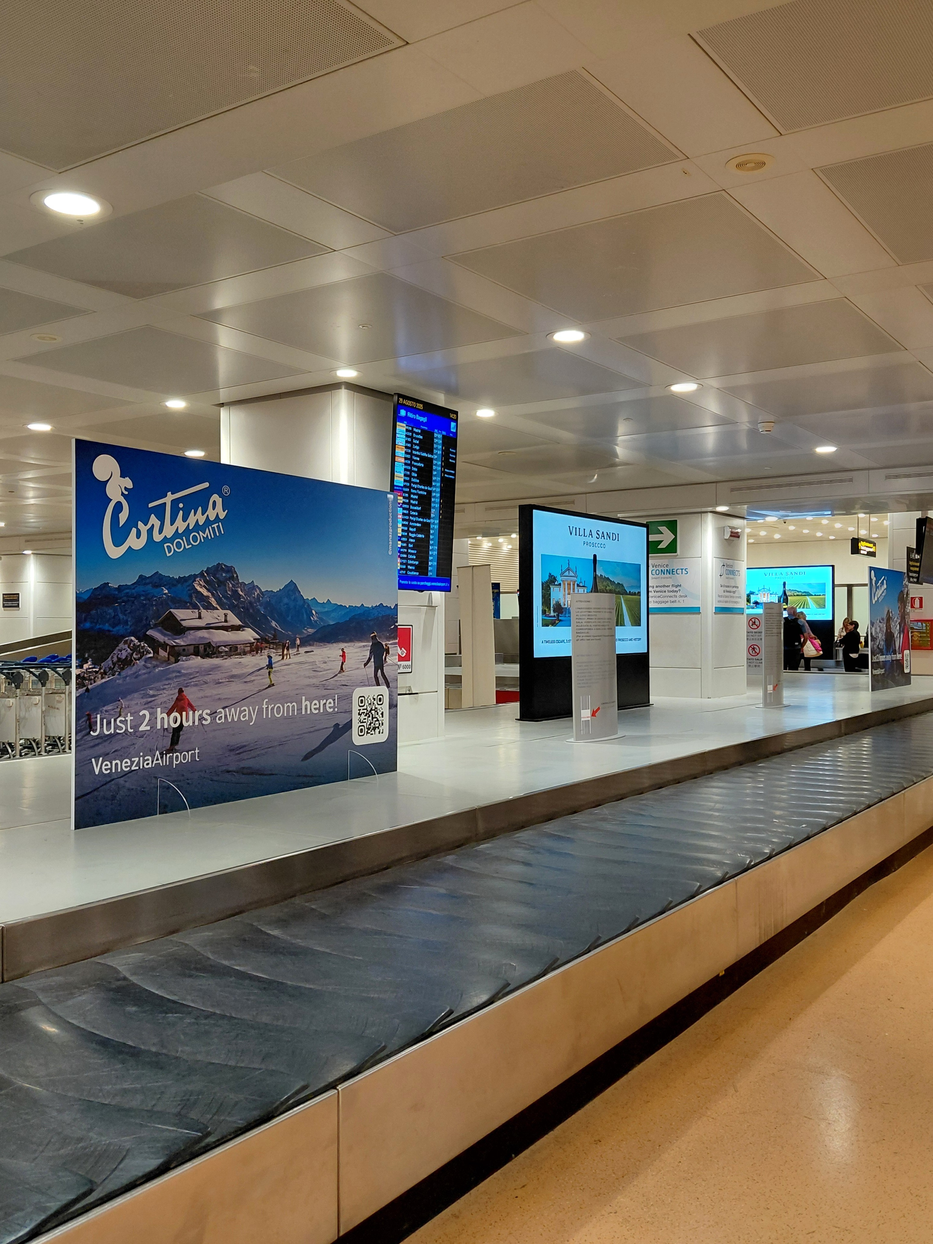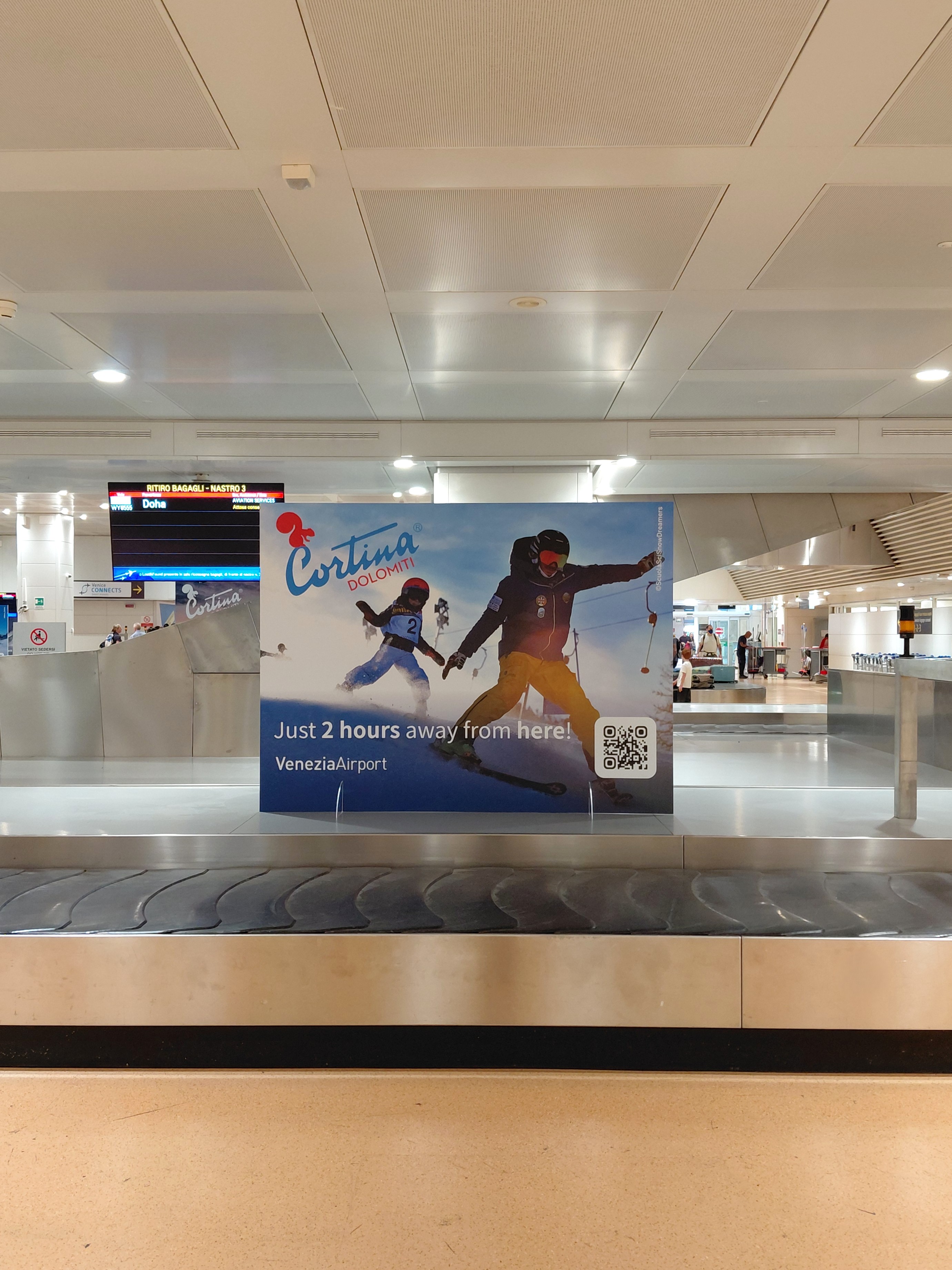 Cortina d’Ampezzo e l’Aeroporto “Marco Polo” di Venezia rafforzano la loro collaborazione con la campagna di marketing territoriale “Just 2 hours away from here!” esposta nell’area arrivi del terminal, che ricorda ai passeggeri la vicinanza di Cortina e delle Dolomiti, raggiungibili dallo scalo di Venezia in sole due ore di viaggio.