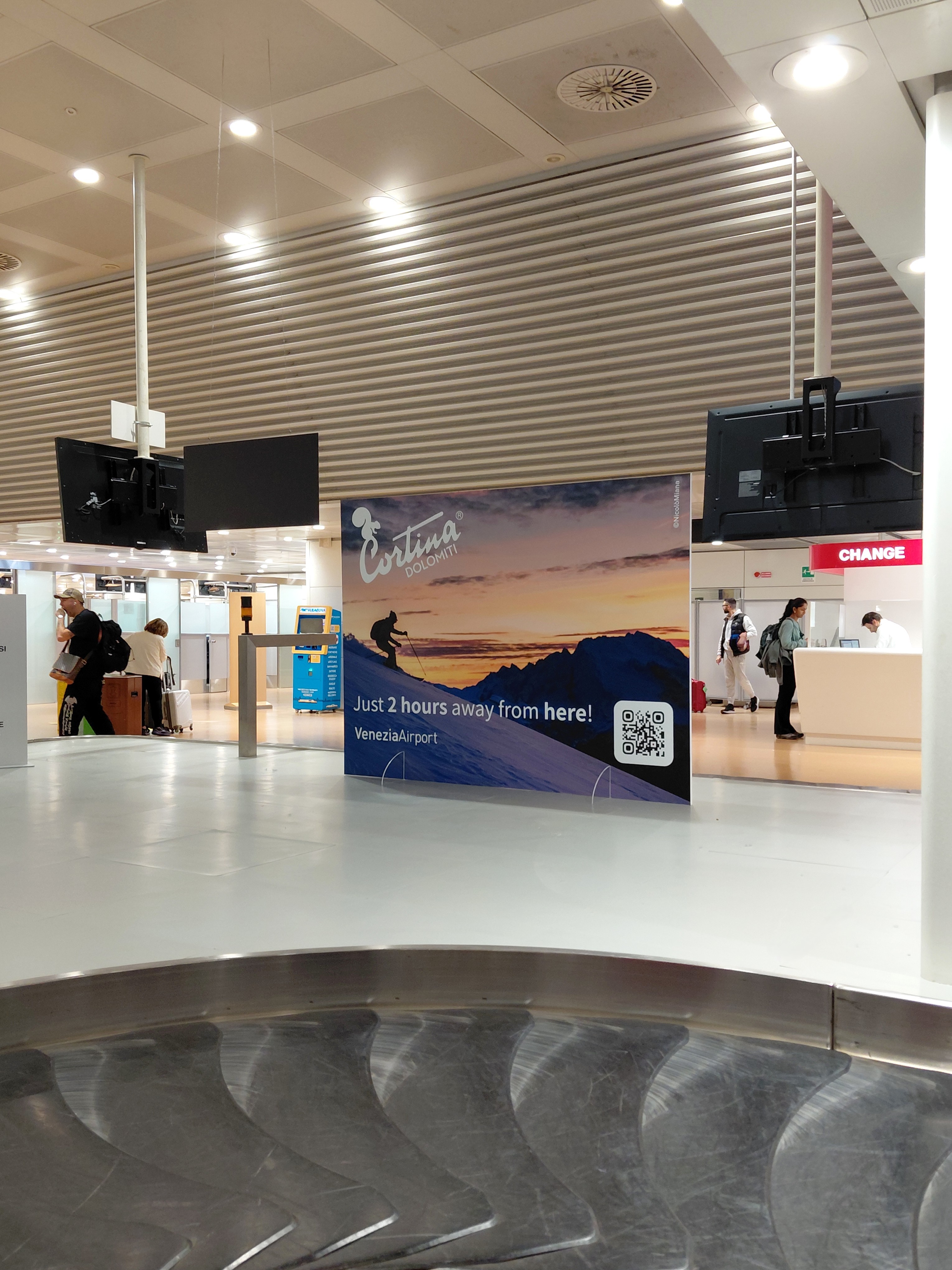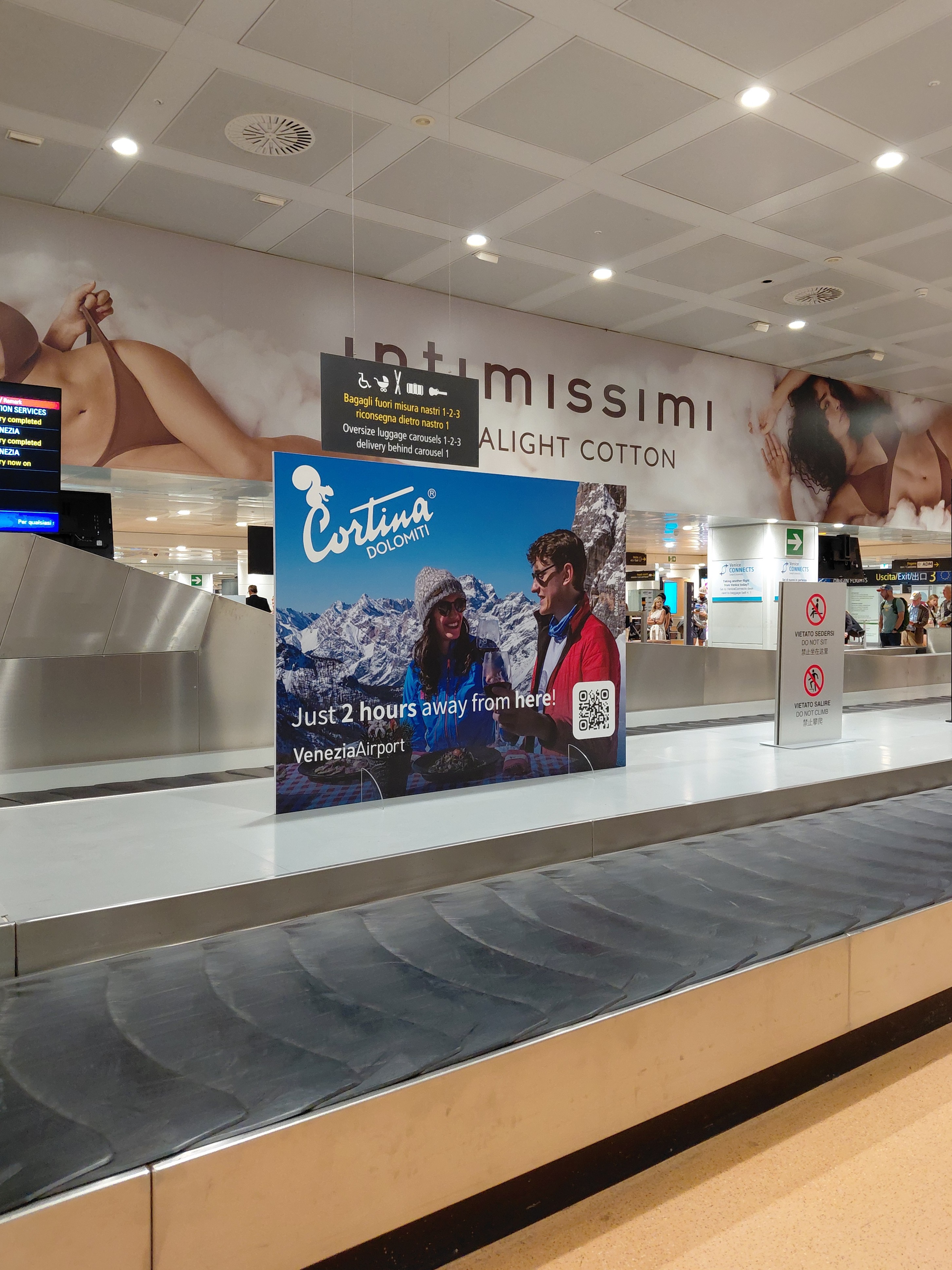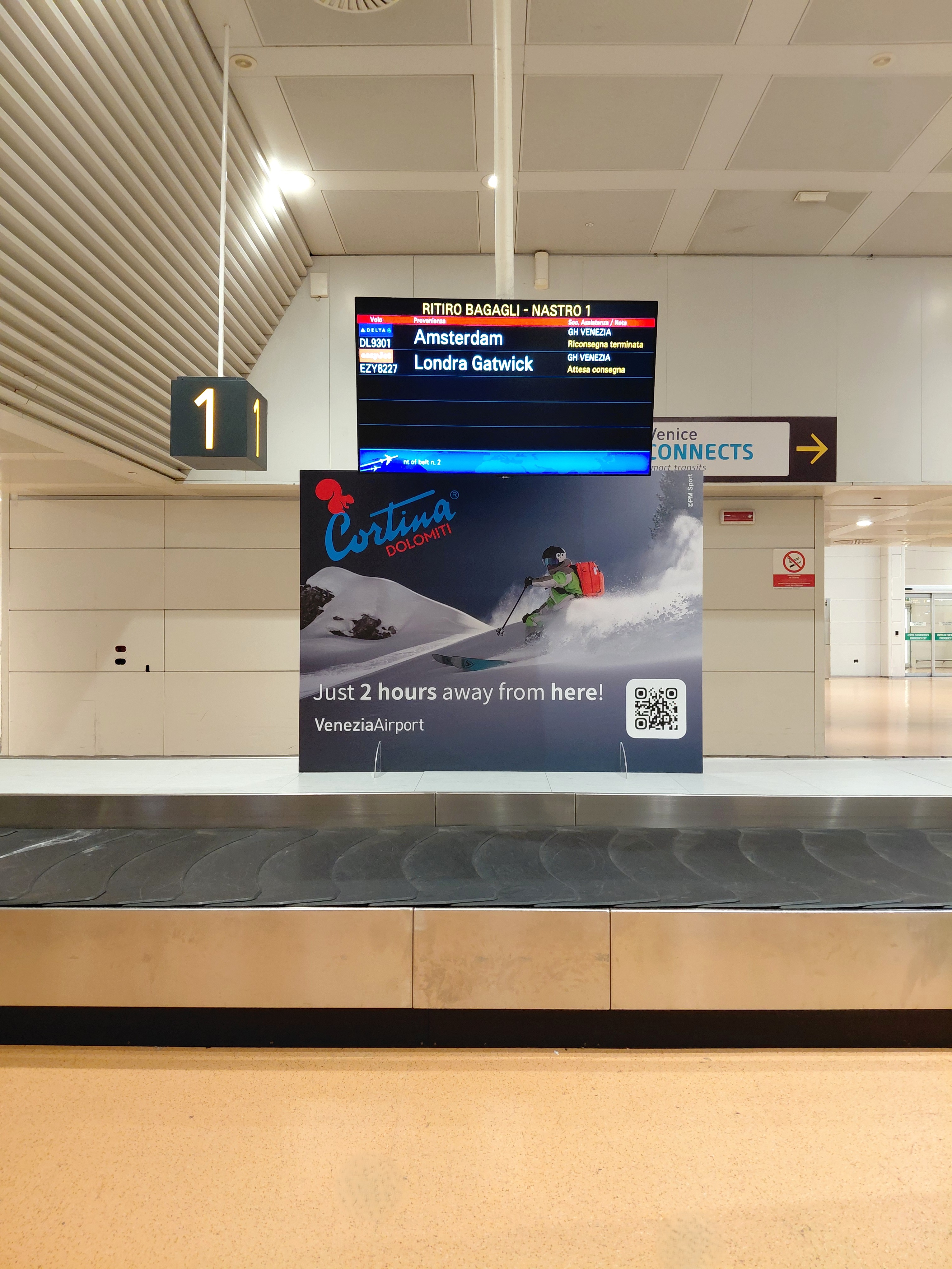 Cortina d’Ampezzo e l’Aeroporto “Marco Polo” di Venezia rafforzano la loro collaborazione con la campagna di marketing territoriale “Just 2 hours away from here!” esposta nell’area arrivi del terminal, che ricorda ai passeggeri la vicinanza di Cortina e delle Dolomiti, raggiungibili dallo scalo di Venezia in sole due ore di viaggio.