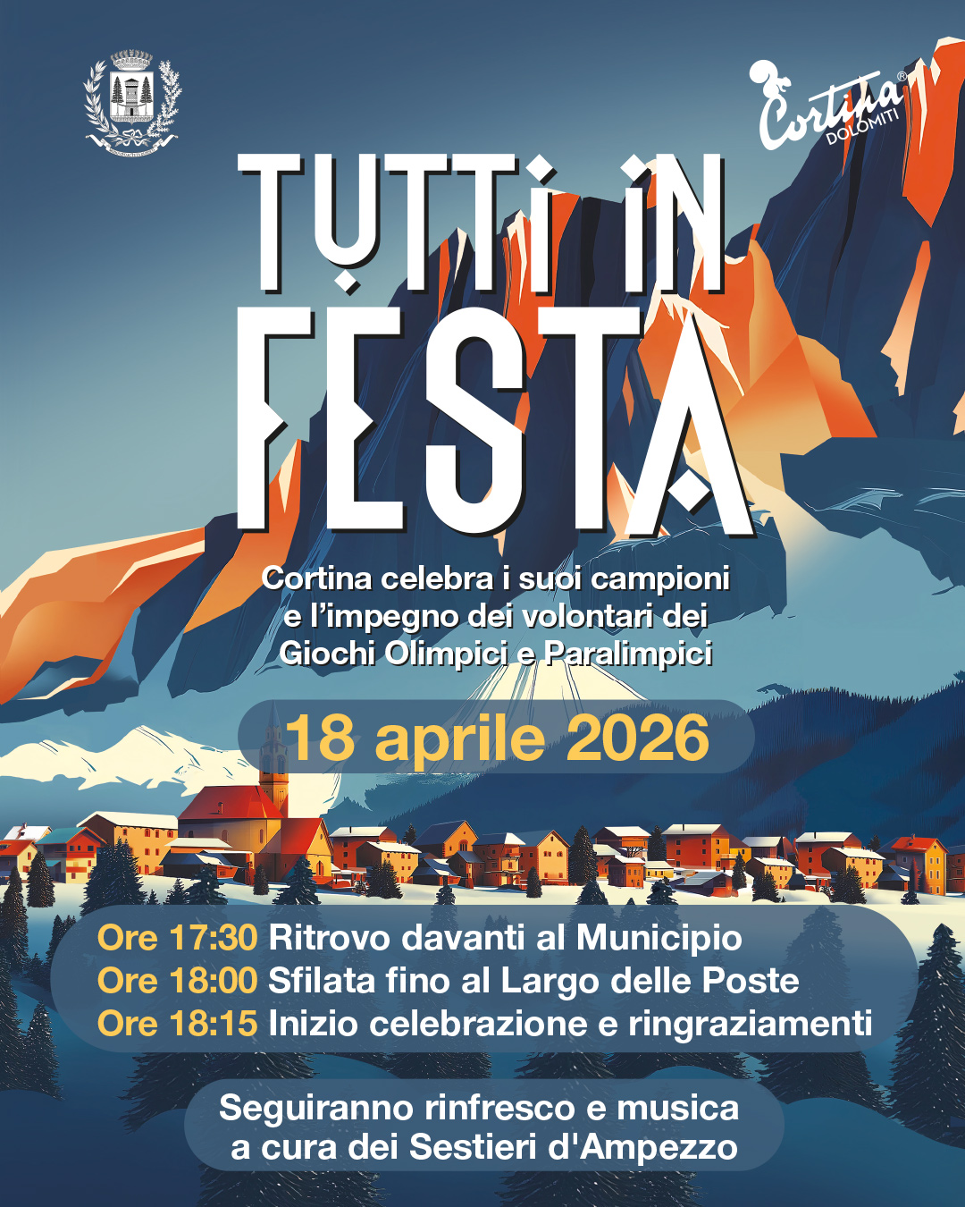 Seguiranno rinfresco e musica a cura dei Sestieri d'Ampezzo.